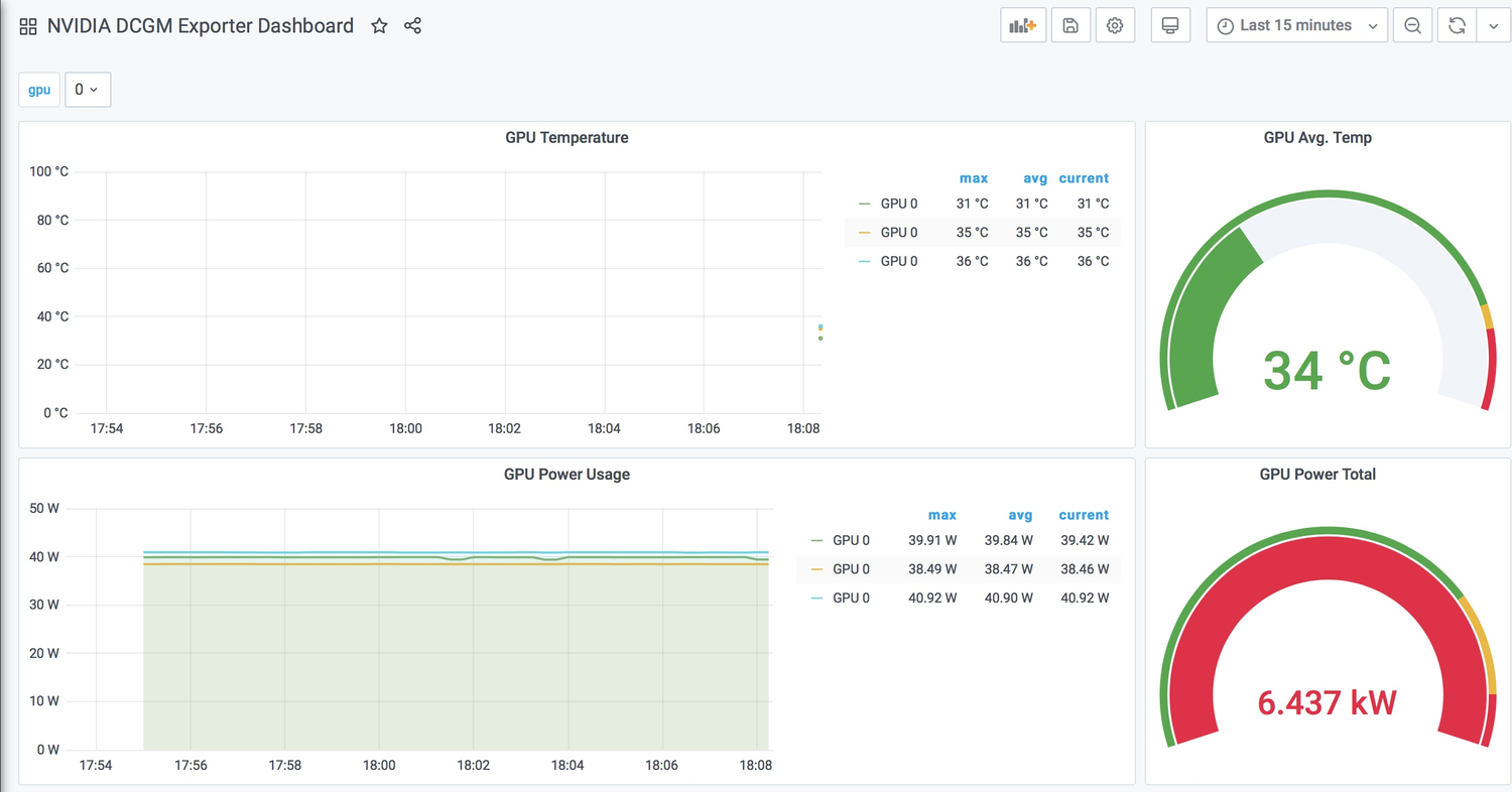 DCGM Exporter是一个用golang编写的收集节点上GPU信息(比如GPU卡的利用率、卡温度、显存使用情况等)的工具,结合Prometheus和Grafana可以提供丰富的仪表大盘。