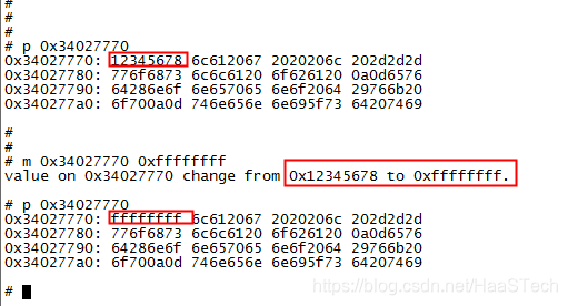 0x34027770的地址的值,从0x12345678修改为0xffffffff的过程