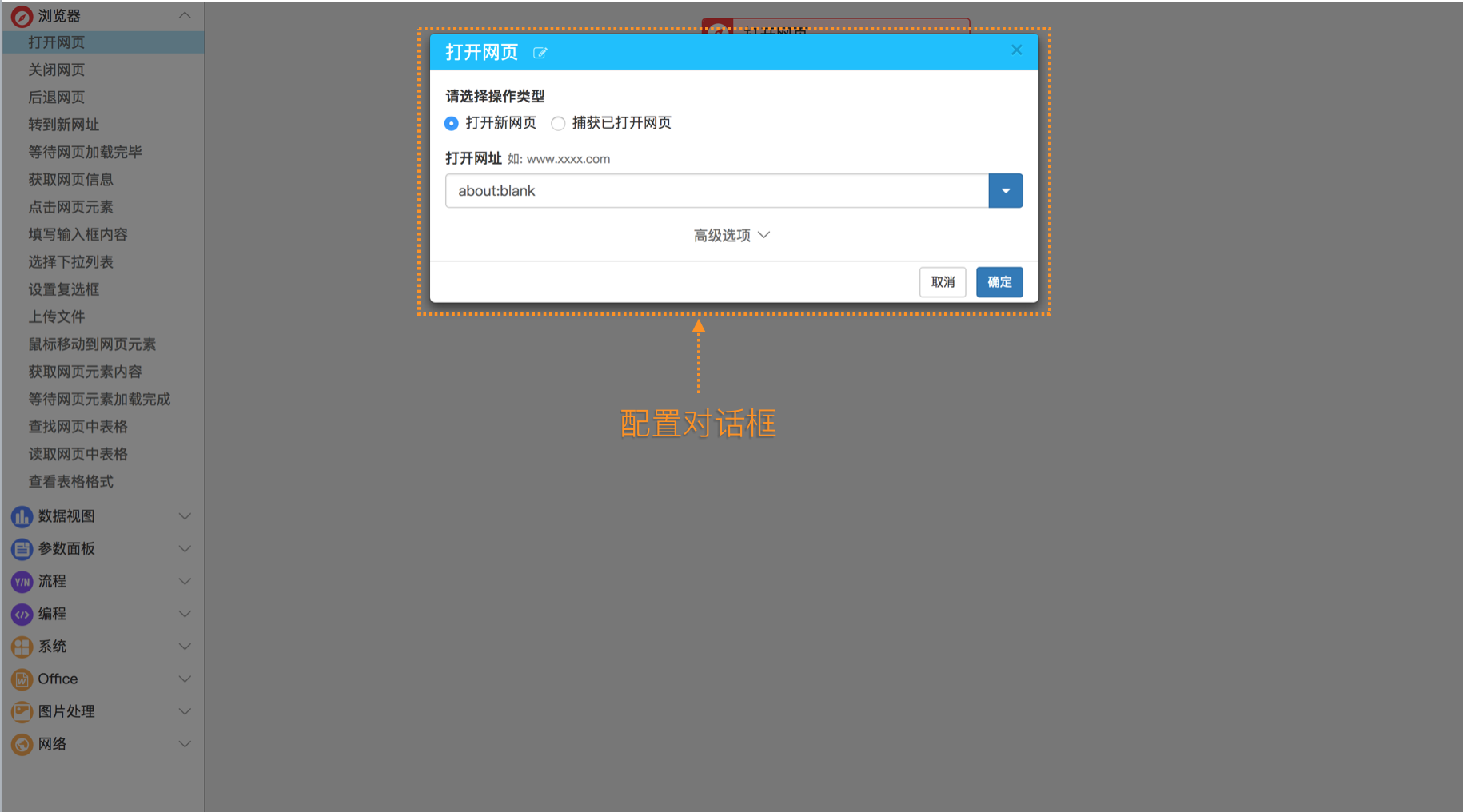 - 浏览器:提供操作网页、抓取网页信息的功能,如"点击按钮"、"输入文本框内容"、"抓取表格内容"等