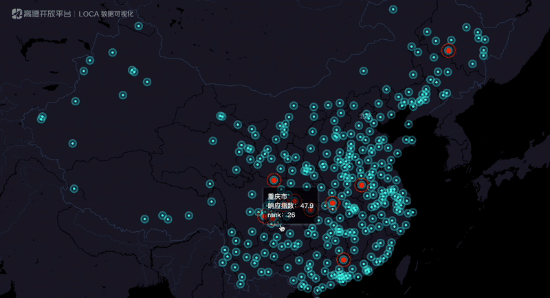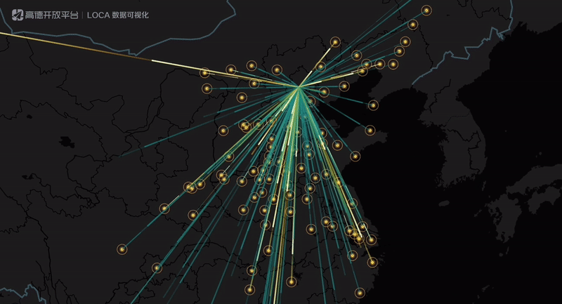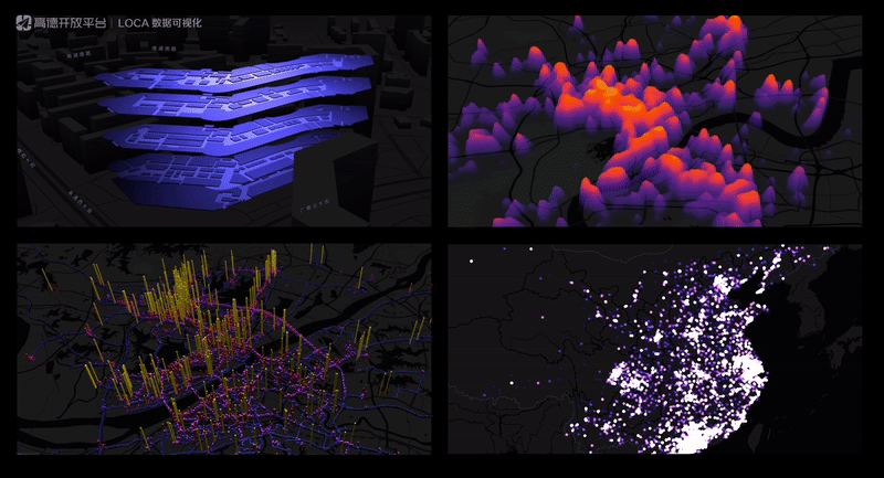 高德 LOCA 数据可视化旨在为各领域企业和个人提供便捷高效的可视化应用技术,提供基于 WebGL 和高德 JSAPI 的大规模地理数据可视化开发框架,应用于地理空间数据的可视化领域。与高德静态底图结合,深度定制,拥有丰富的可视化类型,将高性能海量数据渲染能力、丰富的案例场景、酷炫表达以简单易用的方式提供给用户,让人人都能玩转酷炫的地理数据可视化。