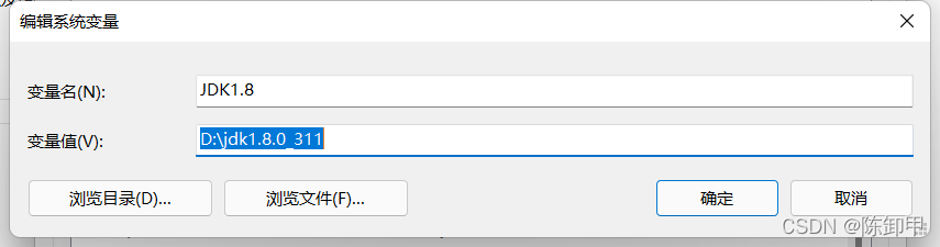 新建环境变量,一个系统只能同时使用一个jdk,但是我们配置两个jdk环境变量需要哪个直接改就行