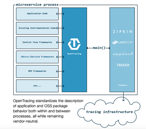 任何跨进程的子服务都可以使用 OpenTracing 来标准化追踪数据的格式。