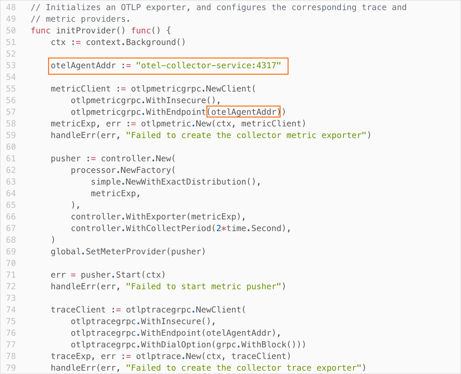 - 修改应用 SDK 中的 Exporter Endpoint 地址为 otel-collector-service:Port。