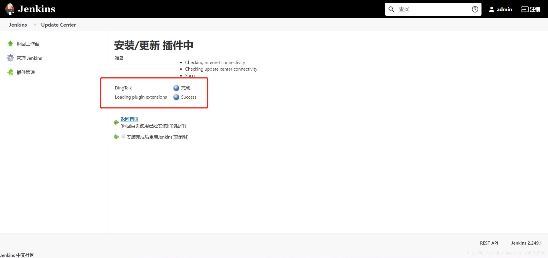 钉钉报警需要安装Ding Talk插件,支持钉钉报警,高本版的jenkins钉钉包叫做Ding Talk