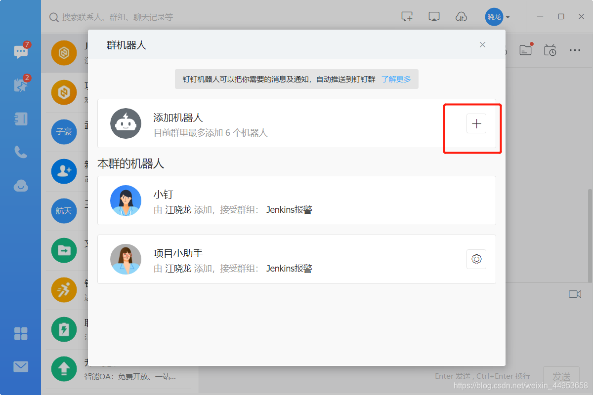 新增一个群聊点击群机器人—新增机器人