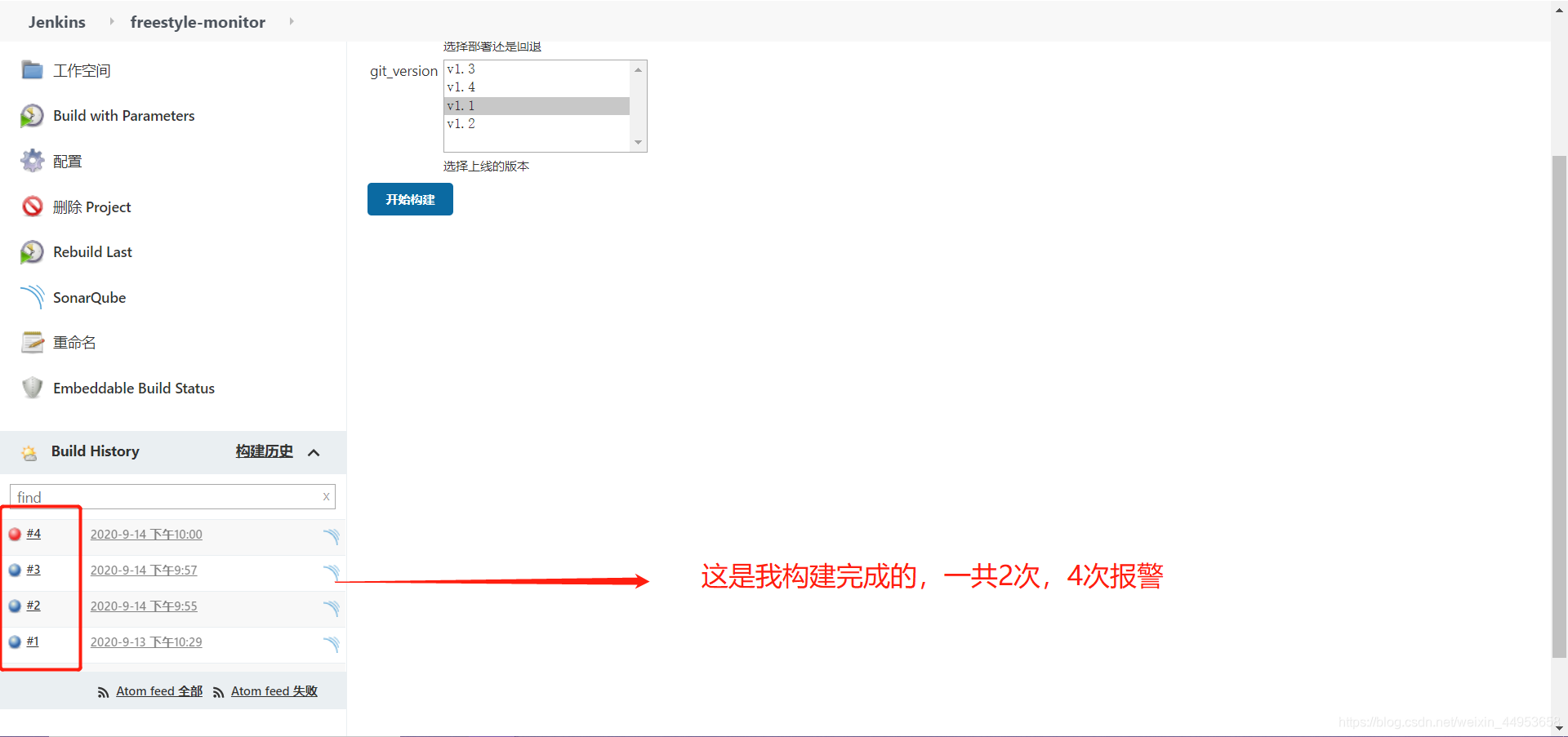 由于我之前设置的钉钉告警触发机制是构建启动时、构建中断时、构建失败时、构建成功时、构建不稳定时都会触发报警机制,刚刚我构建了2次,一次成功的、一次失败的,因此会收到4条短信报警由于刚刚设置了通知人,因此会在消息里@那个人