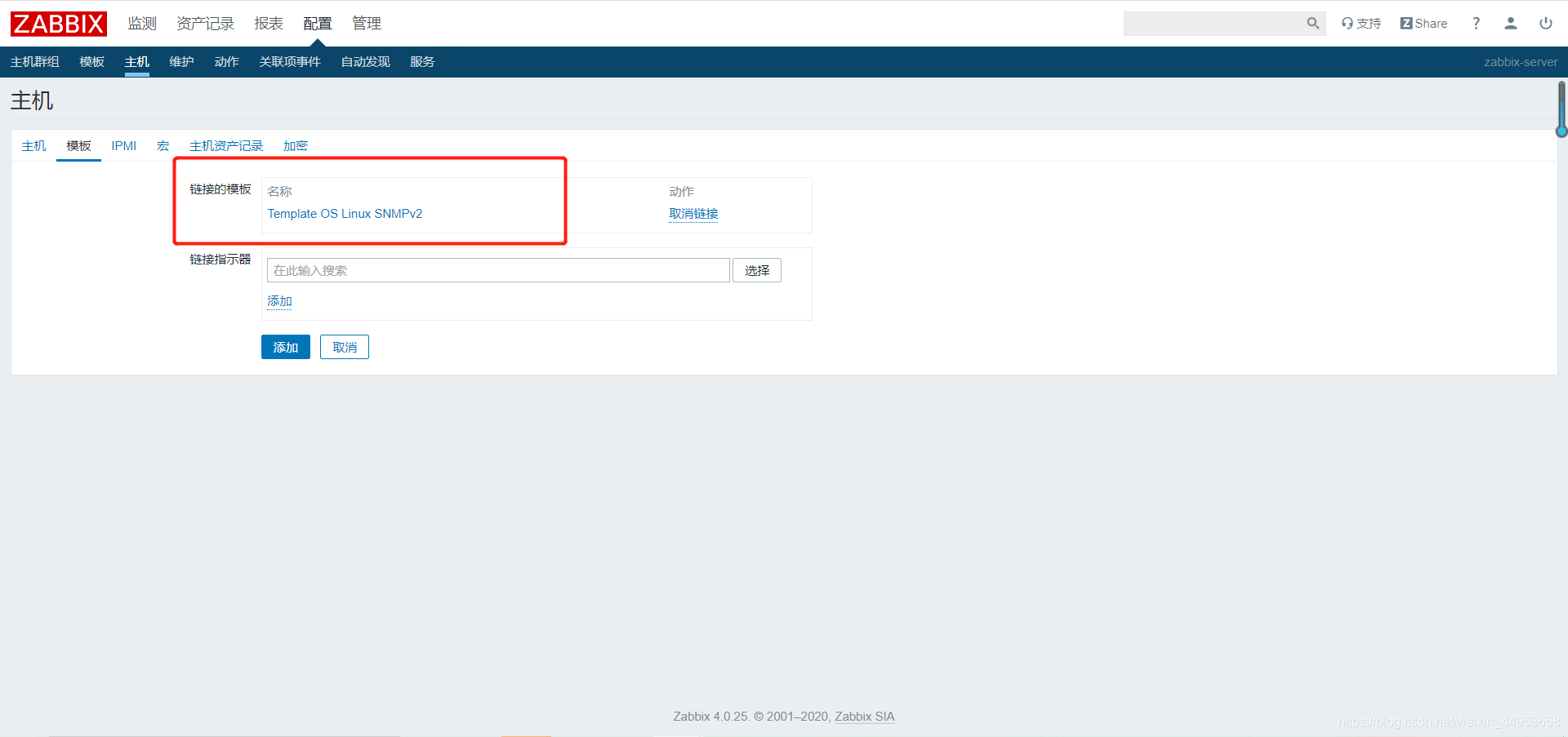 这里选择Template OS Linux SNMPv2这个模板,这个模板是snmp v2版本的模板