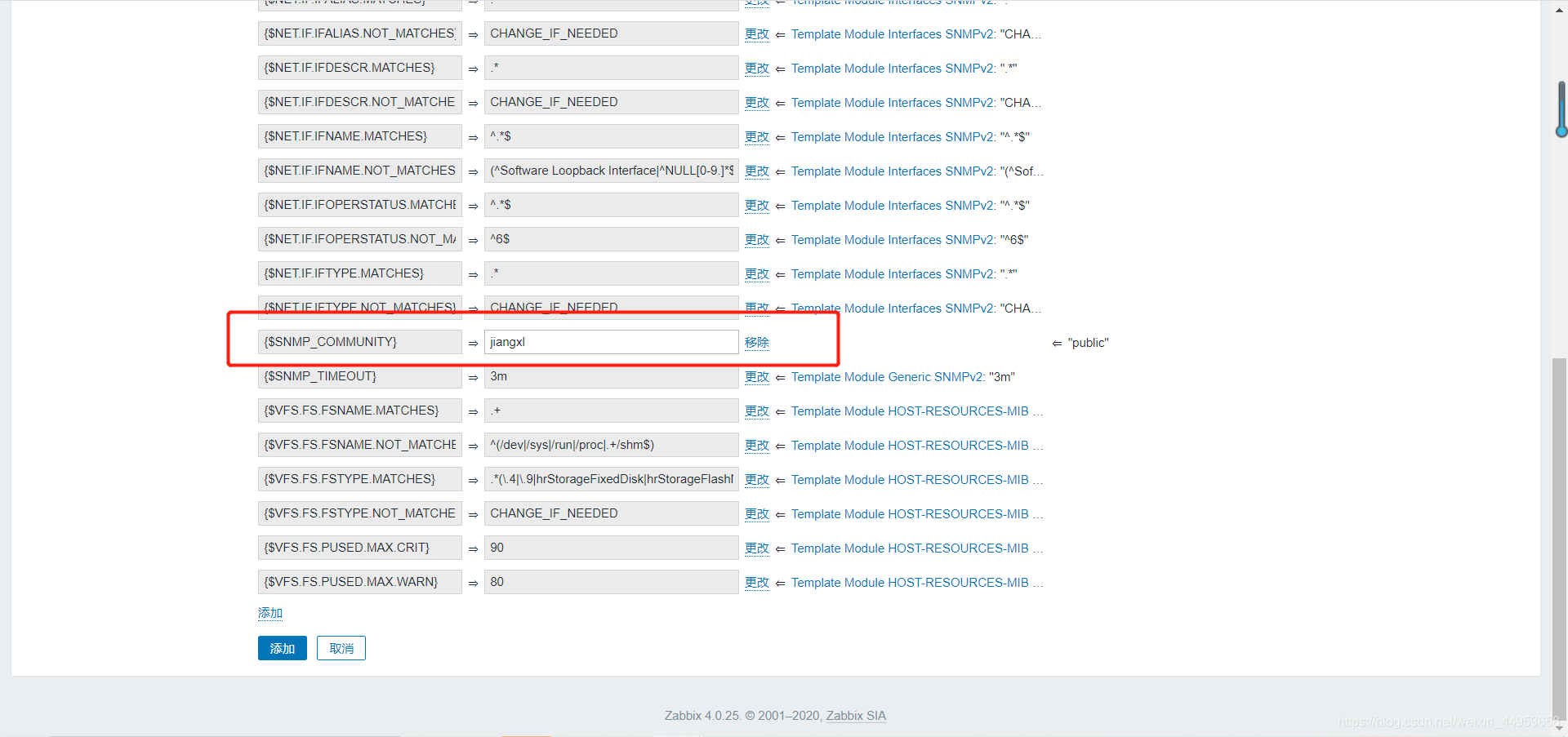 找到下面的{$SNMP_COMMUNITY} => jiangxl