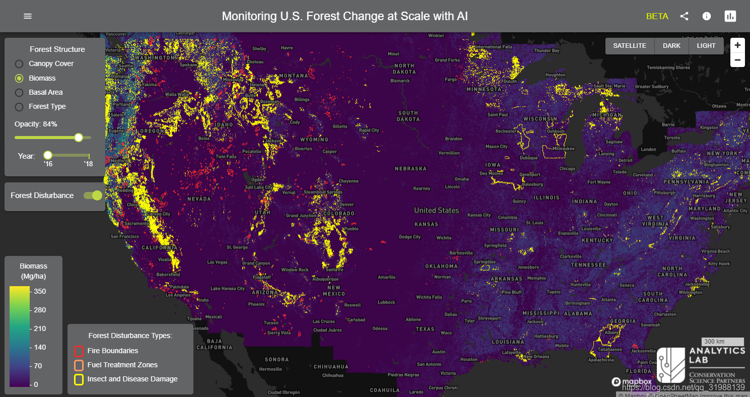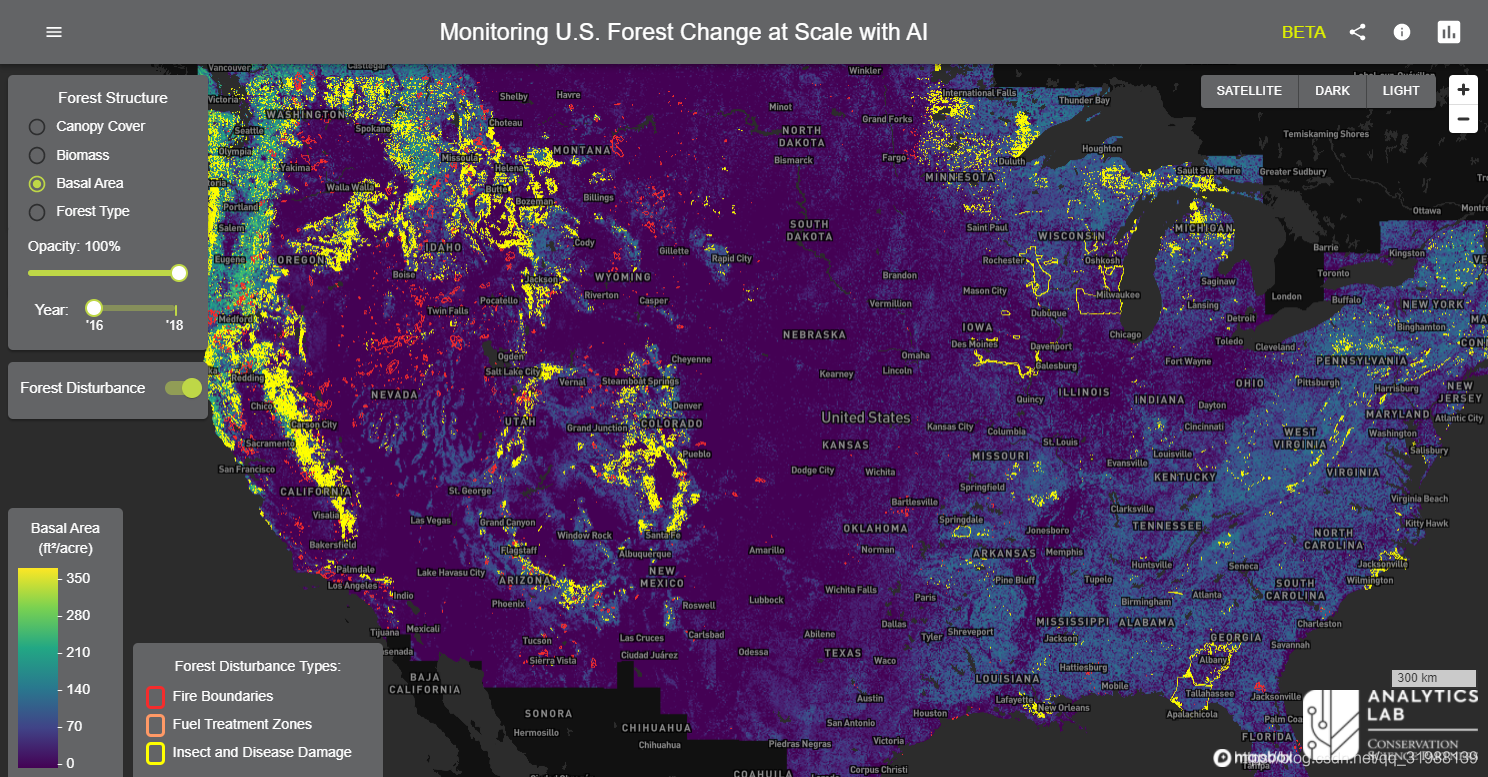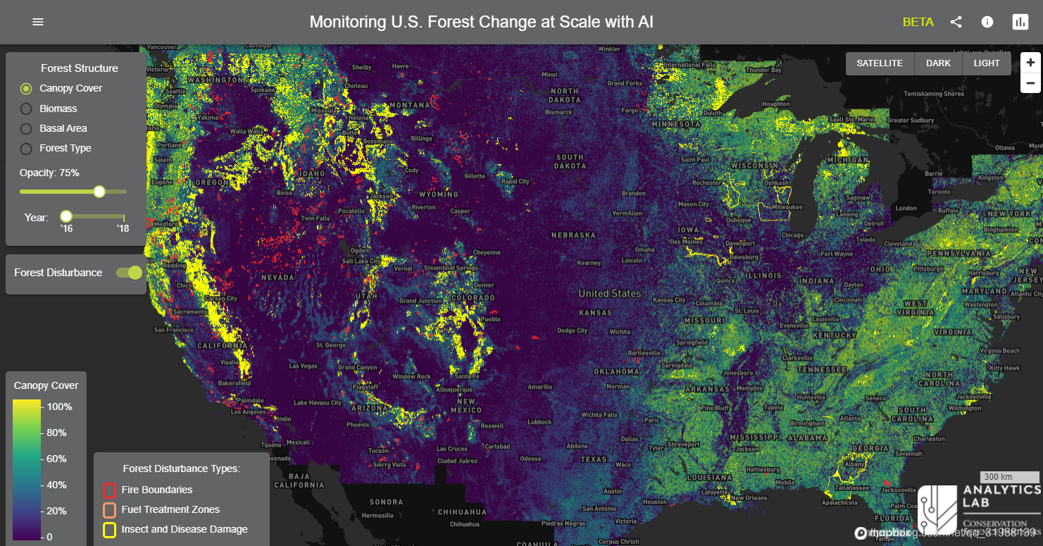 第三个:利用人工智能监测森林变化情况,使用人工智能的力量来建模和监测森林随时间的变化和干扰。