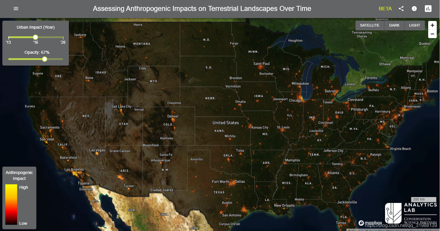 第二个:美国认为影像的监测,利用 Azure 云基础架构创建人类土地利用影响的最新估计和地图。