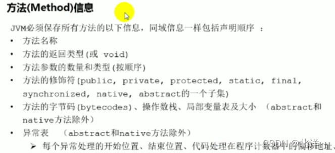 方法区用于存储已被虚拟机加载的类型信息,常量,静态变量,被即时编译器编译后的代码缓存。