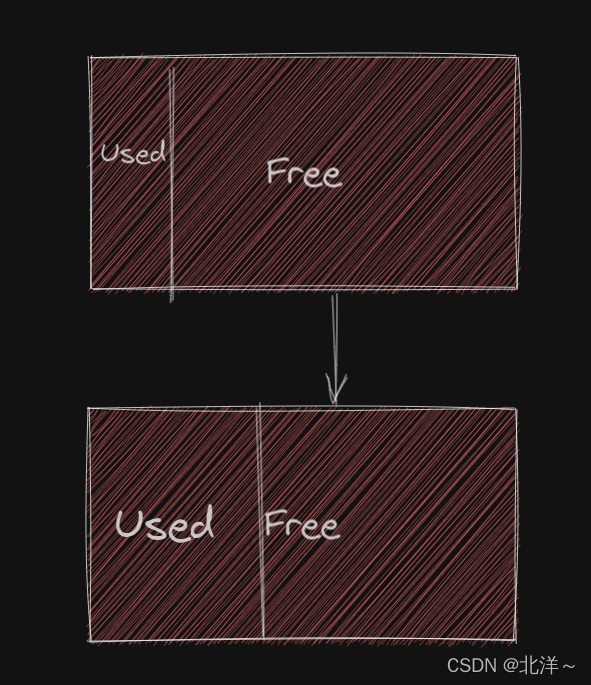 1.假如堆里面的内存是整齐的,用过的在一边,没有用过的内存放在另外一边(后期配图),这个时候中间有个指针来作为两边内存的界限,当内存分配时,指针移动对象内存大小对应的距离即可,这种叫指针碰撞。