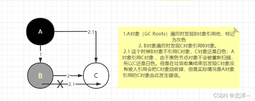 接下来用三色标记法进行解释如果没有STW会发生什么情况: