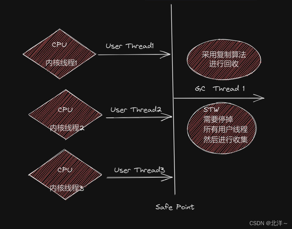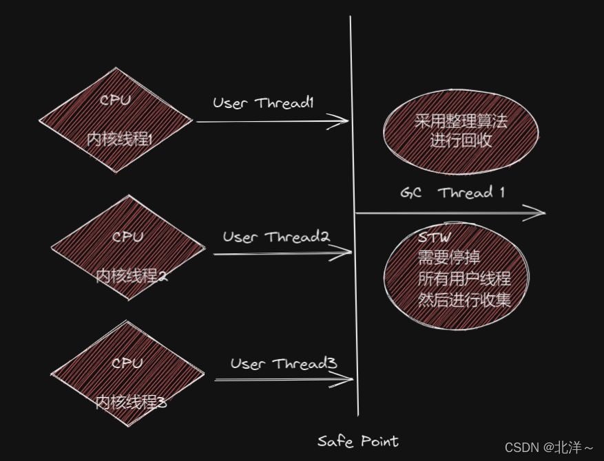垃圾回收时需要STW,整个STW需要停止掉所有的用户线程来保证回收过程中引用关系不会发生变化。