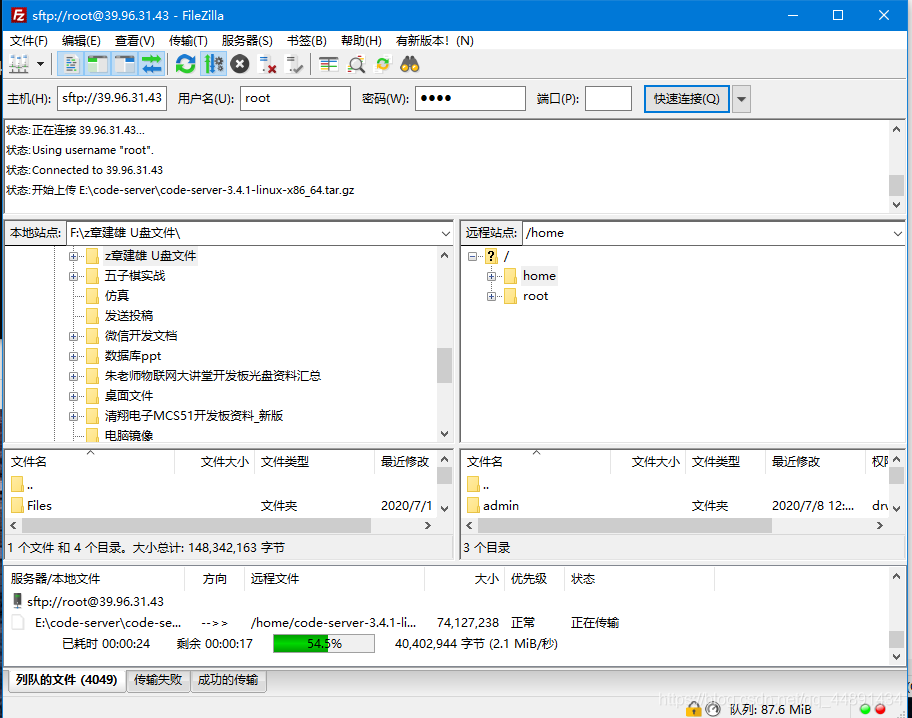 使用FileZilla软件,将下好的包直接传到服务器上,具体步骤看视频:https://www.bilibili.com/video/BV1vt411P7zm/