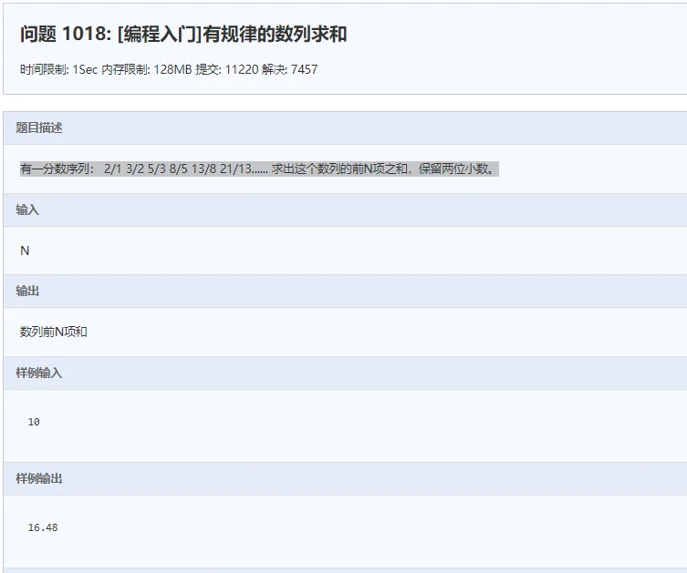 有一分数序列: 2/1 3/2 5/3 8/5 13/8 21/13… 求出这个数列的前N项之和,保留两位小数。