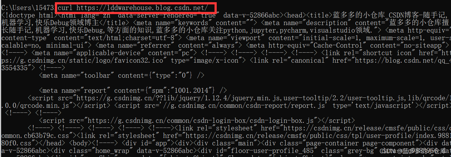 curl是一个命令行访问URL的工具,作用是发出网络请求,然后得到和提取数据,显示在"标准输出"(stdout)上面(如图)。