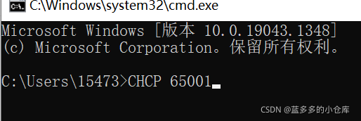 CHCP 65001 UTF-8 CHCP 950 繁体中文 CHCP 936 简体中文(GBK) CHCP 437 MS-DOS美国英语