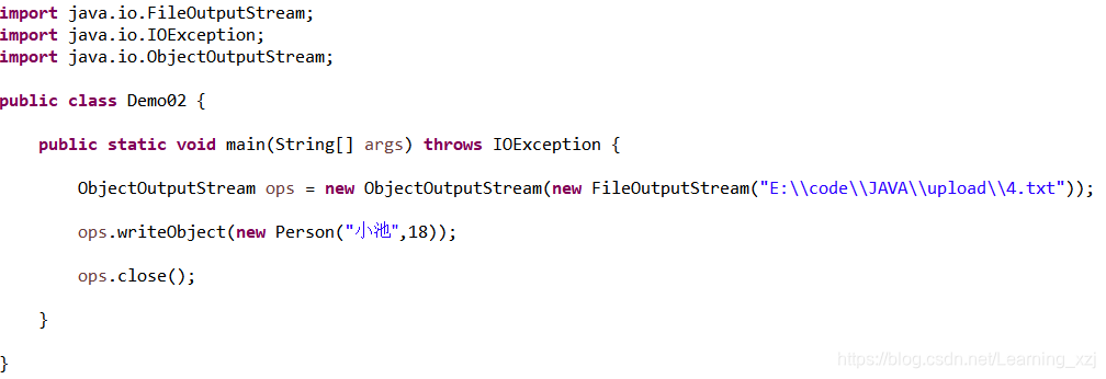 (2)使用ObjectOutputStream对象中的方法 writeObject,把对象写入到文件中