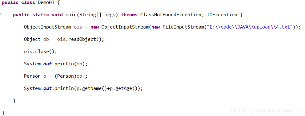 (2)使用ObjectInputStream对象中的方法readObject读取保存对象的文件