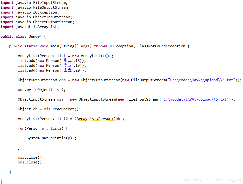 当我们想在文件中保存多个对象的时候,可以把多个对象存储到一个集合中,对集合进序列化和反序列化