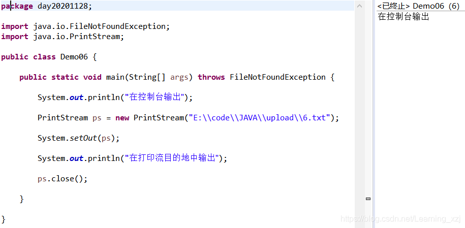 使用System.setOut方法改变输出语句的目的地改为参数中传递的打印流的目的地