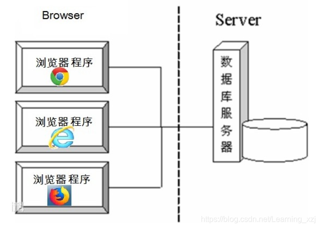B / S结构 :全称为Browser/Server结构,是指浏览器和服务器结构。常见浏览器有谷歌、火狐等。