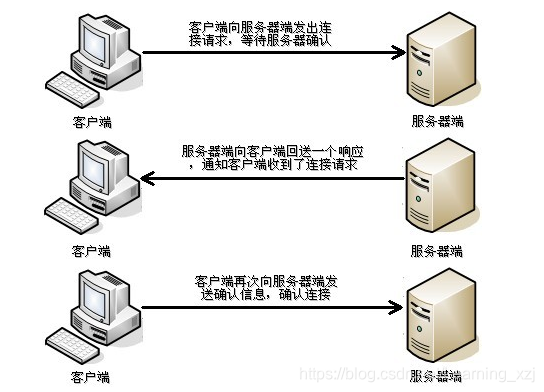 三次握手:TCP协议中,在发送数据的准备阶段,客户端与服务器之间的三次交互,以保证连接的可靠