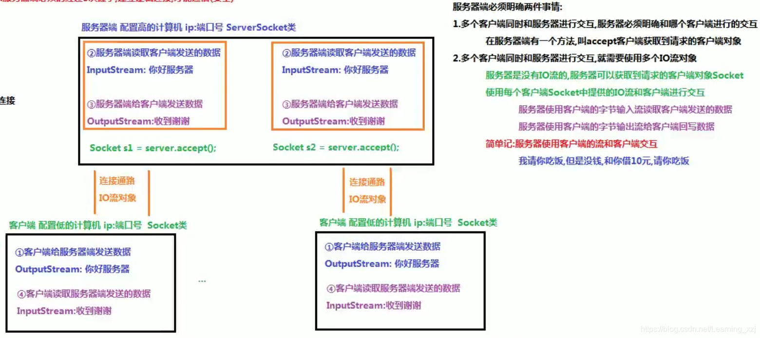 服务器端必须明确一件事情:必须知道是哪个客户端请求的服务器,所以可以使用accpet方法获取到请求的客户端对象Socket