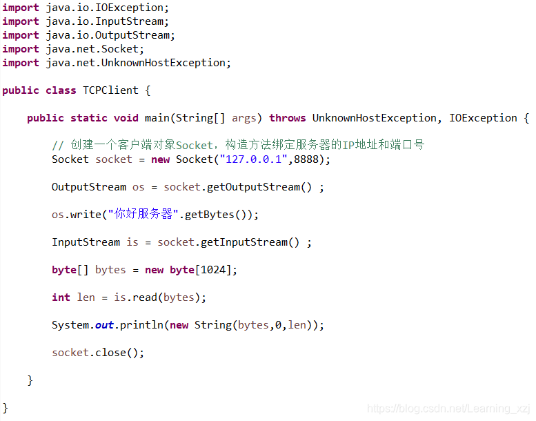 (1)创建一个客户端对象Socket,构造方法绑定服务器的IP地址和端口号