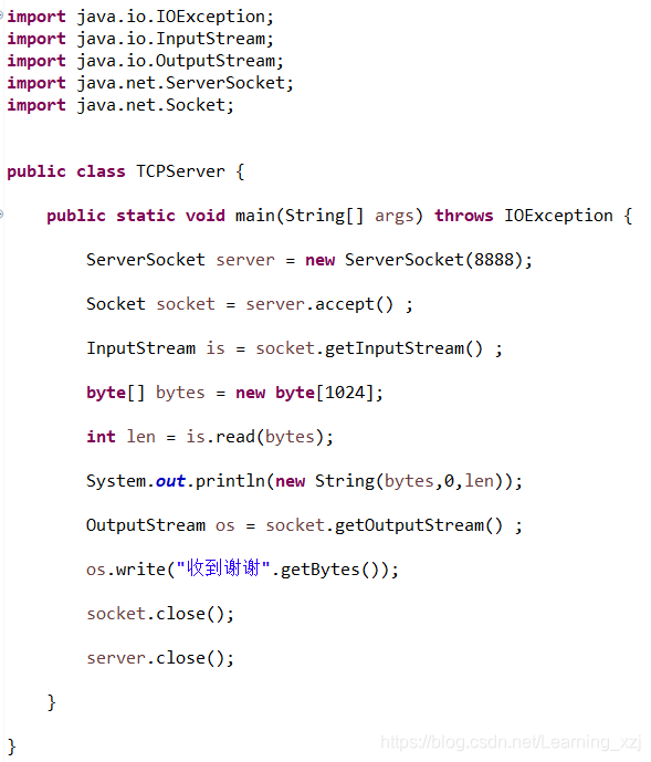 (4)使用网络字节输入流 IutputStream对象中的方法 read 读取客户端发送的数据