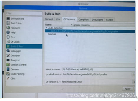 桌面版本安装了qt5,那么我们就没必要自己配置了,下次也可以直接装qt5,最关键的点是,下载交叉编译的qt源码需要和树莓派对应,我们查看树莓派qt的版本,如下图,树莓派的qt版本是5.7.1。