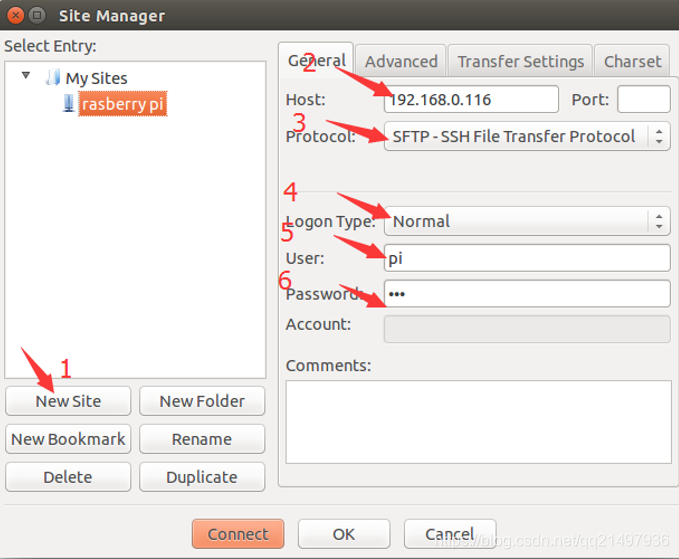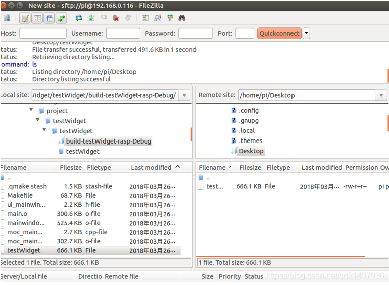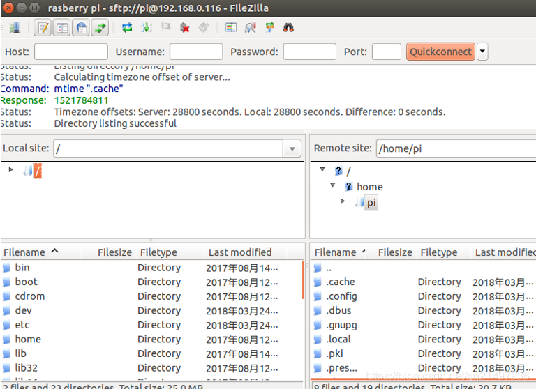 树莓派和ubuntu在同一个局域网,打开filezilla软件,登录树莓派传送