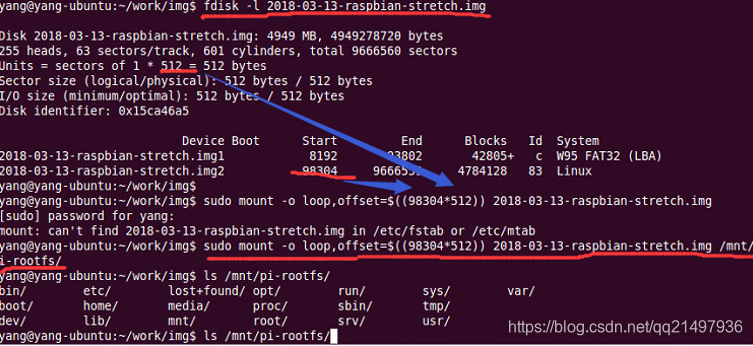 此处,若offset不对,mount会提示需要指定文件系统格式,所以要fdisk查看。