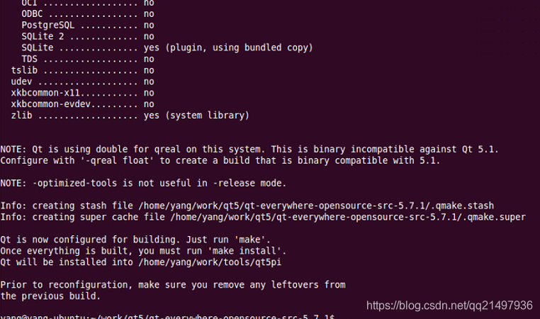 cd ~/work/qt5.7.1/qtbase ./configure -opengl es2 -device linux-rasp-pi-g++ -device-option CROSS_COMPILE=arm-linux-gnueabihf- -sysroot /mnt/pi-rootfs -opensource -confirm-license -optimized-qmake -reduce-exports -release -make libs -prefix /usr/local/qt5pi -hostprefix /usr/local/qt5pi -v