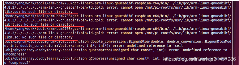 出现错误,找不到libz.so,librt.so,libm.so,如下图: