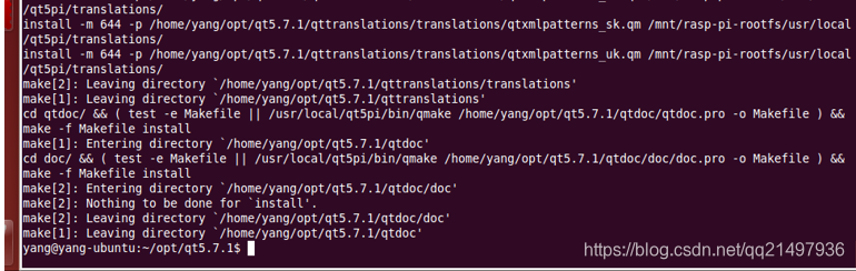 安装时安装到文件路径(prefix):/mnt/pi-rootfs/usr/local/qt5pi,主要是目标机的库文件,插件等等,会自动分开装为prefix和hostprefixe;