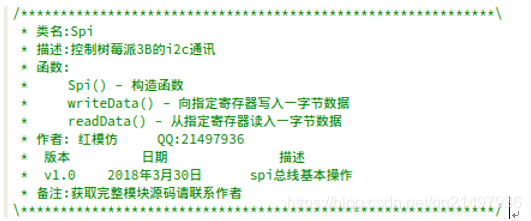 #include "spi.h" #include "wiringPi.h" #include "wiringPiSPI.h" #include <QDebug> #include <QByteArray> Spi::Spi(QObject *parent) : QObject(parent) { wiringPiSetup(); … } bool Spi::init(Spi::CHOICE c, int speed) { … _fd = wiringPiSPISetup(_channel, _speed); … } void Spi::writeData(int reg, uchar data) { … ret = wiringPiSPIDataRW(_channel, ch, 2); } uchar Spi::readData(int reg) { … wiringPiSPIDataRW(_channel, data, 3); … }