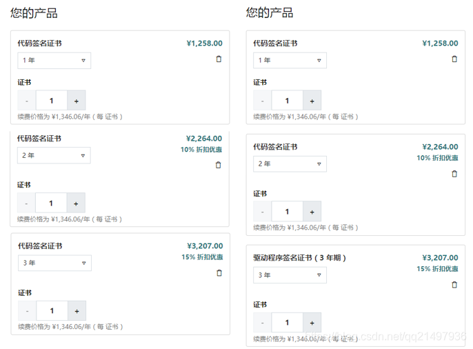 普通的代码签名证书,行情基本一个品牌都在1000多一年,而知名品牌在3000多一年在样子,本质区别不大。