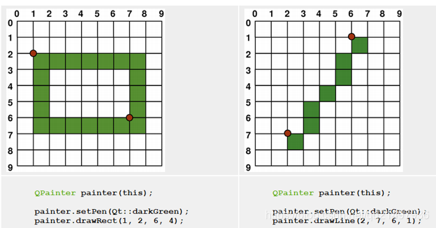 - 坐标系统:说明QPainer坐标系的工作原理。