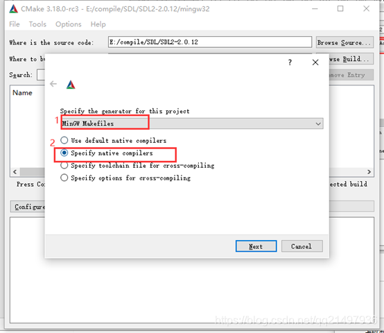 配置生成工程的编译器类型和具体的编译器,如下图:
