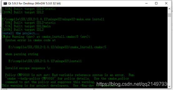 bool SDLManager::testEnv() { // 初始化SDL if((SDL_Init(SDL_INIT_VIDEO|SDL_INIT_AUDIO)== -1)) { // 初始化失败,打出错误 qDebug() << __FILE__ << __LINE__ << "Failed to SDL_INIT_VIDEO|SDL_INIT_AUDIO" << SDL_GetError(); return false; }else { qDebug() << __FILE__ << __LINE__ << "succeed to SDL_INIT_VIDEO|SDL_INIT_AUDIO"; } SDL_Quit(); return true; }