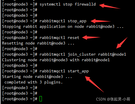 启动 RabbitMQ 服务,顺带启动 Erlang 虚拟机和 RbbitMQ 应用服务 (在三台节点上分别执行以下命令)