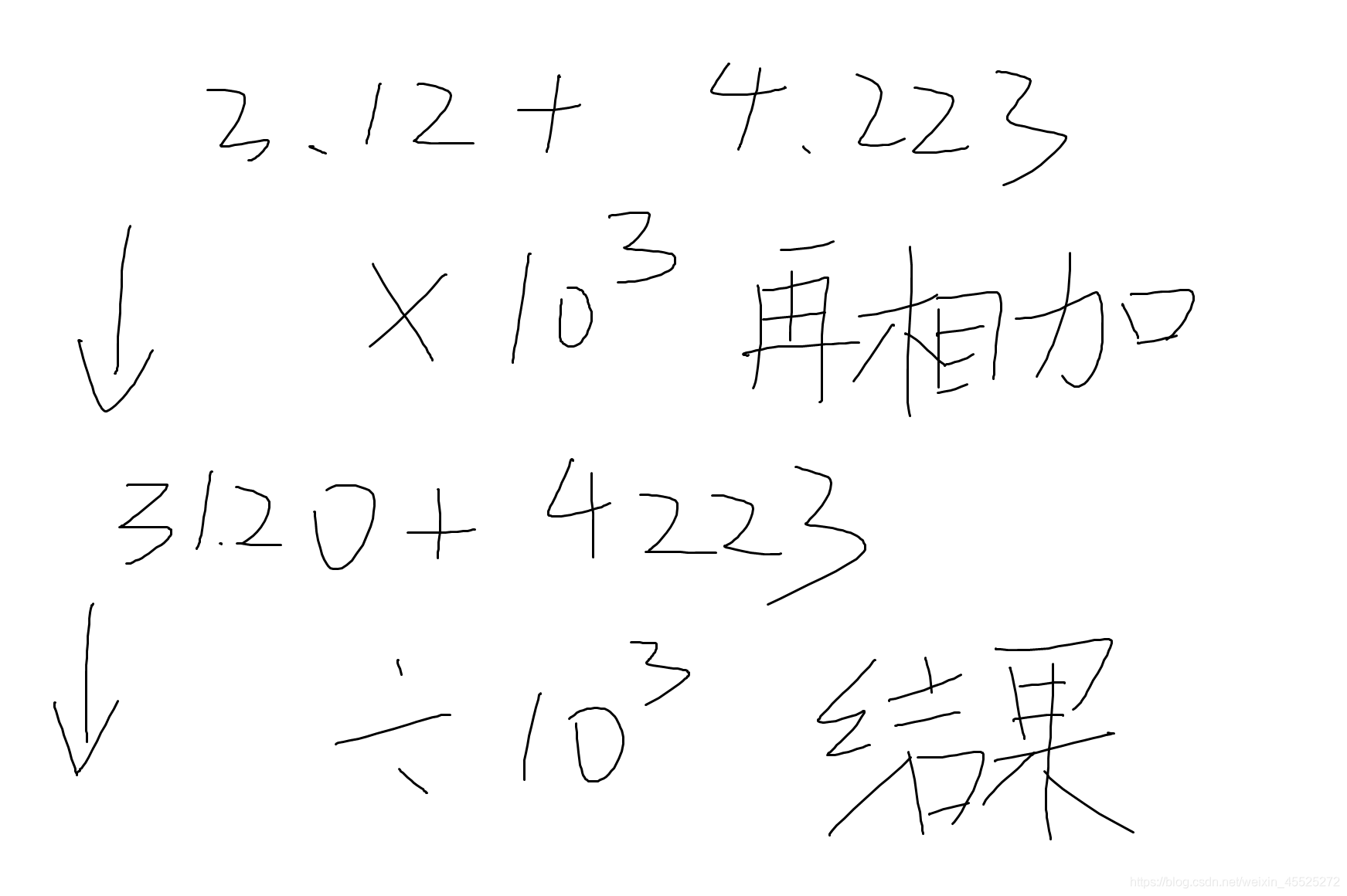 计算过程是将小数都乘以两数10的最大次幂化为整数,这样可进行高精度计算,最后再将得数除以相应的10的次幂