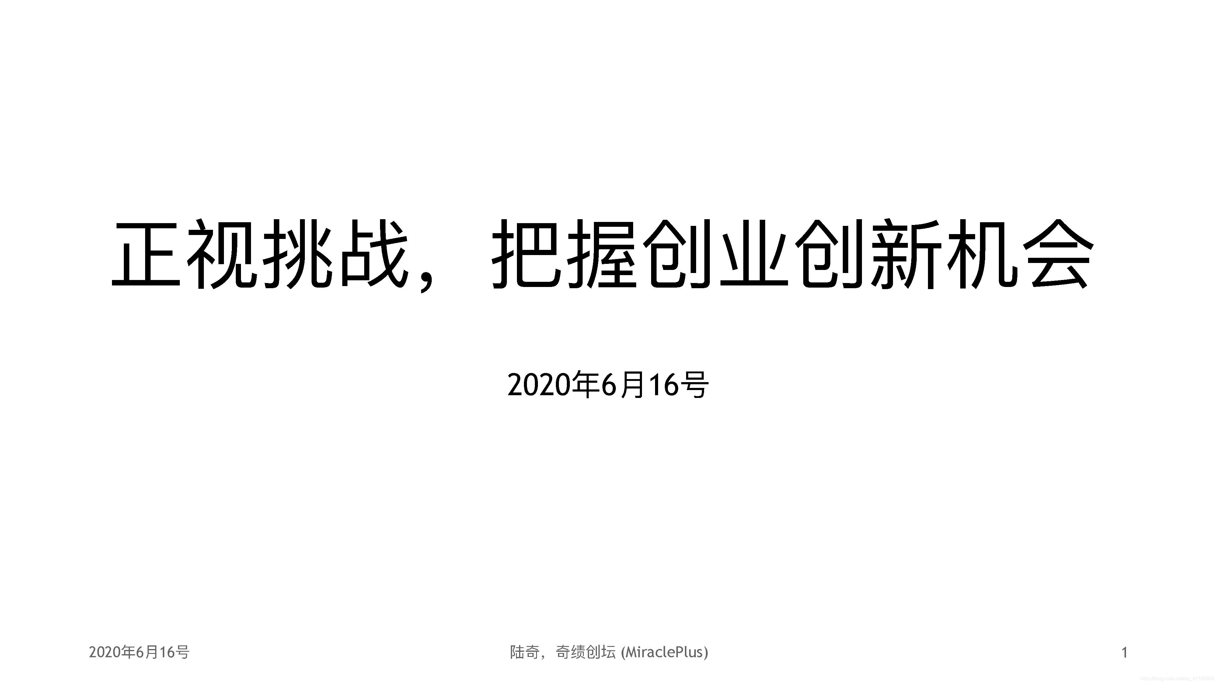 大家好,我是奇绩创坛的陆奇,很高兴大家参加奇绩创坛的直播,我今天给大家分享的主题是“正视挑战,把握创业创新的机会”。我为什么会选择这样一个主题跟大家分享,本质上是因为世界正处在一个巨大的变化当中,我们有百年未遇的全球新冠疫情,在全球范围内对人们的生命健康和经济生活造成了大规模的影响。同时,新冠造成的未来的新的世界格局,将对全球有非常大的结构性影响,因此,世界经济政治的格局也在加速的变化,各行各业都面临着非常大的挑战和不确定性。