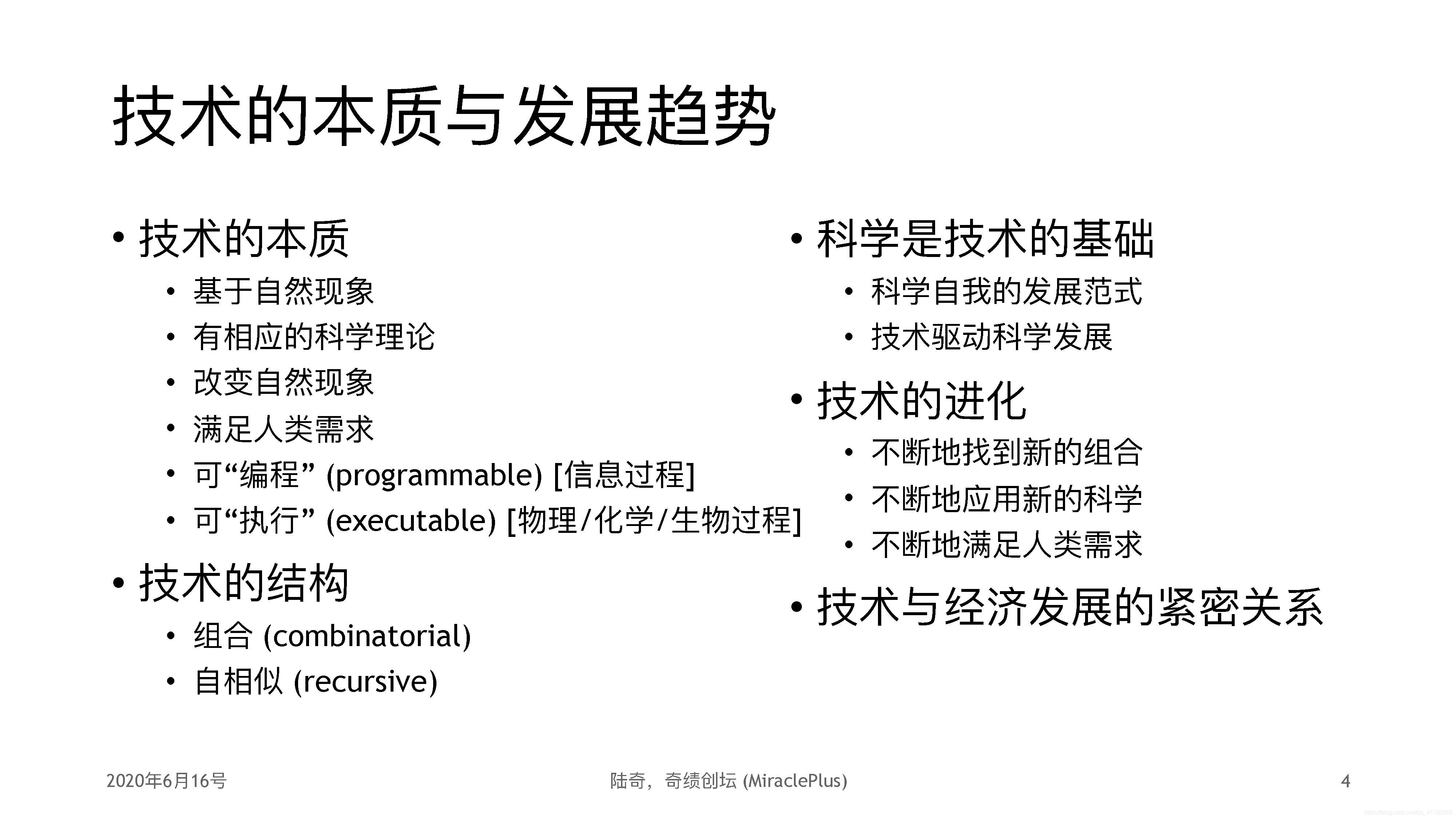 接下来我们先看技术,观察技术的发展趋势,来做出一些判断。要对技术发展的趋势做判断,我们首先起步的,是要了解技术的本质,技术的本质有三点。