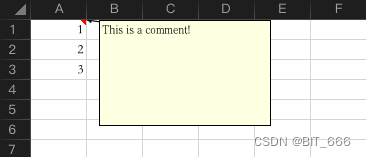 # 注释 cell = sheet.cell(row=1, column=1) comment = Comment("This is a comment!", "DDD") cell.comment = comment