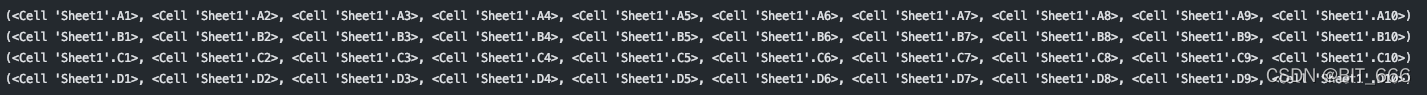 # 从 row 的角度遍历 sheet for rows in sheet.rows: for row in rows: print(row.value) # 从 col 的角度遍历 sheet for cols in sheet.columns: for col in cols: print(col.value)