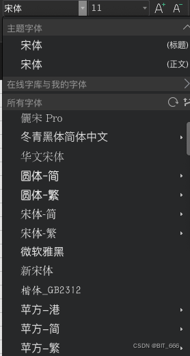 字体样式等参数详情也可以直接去 excel 里看,可以提前看看效果: