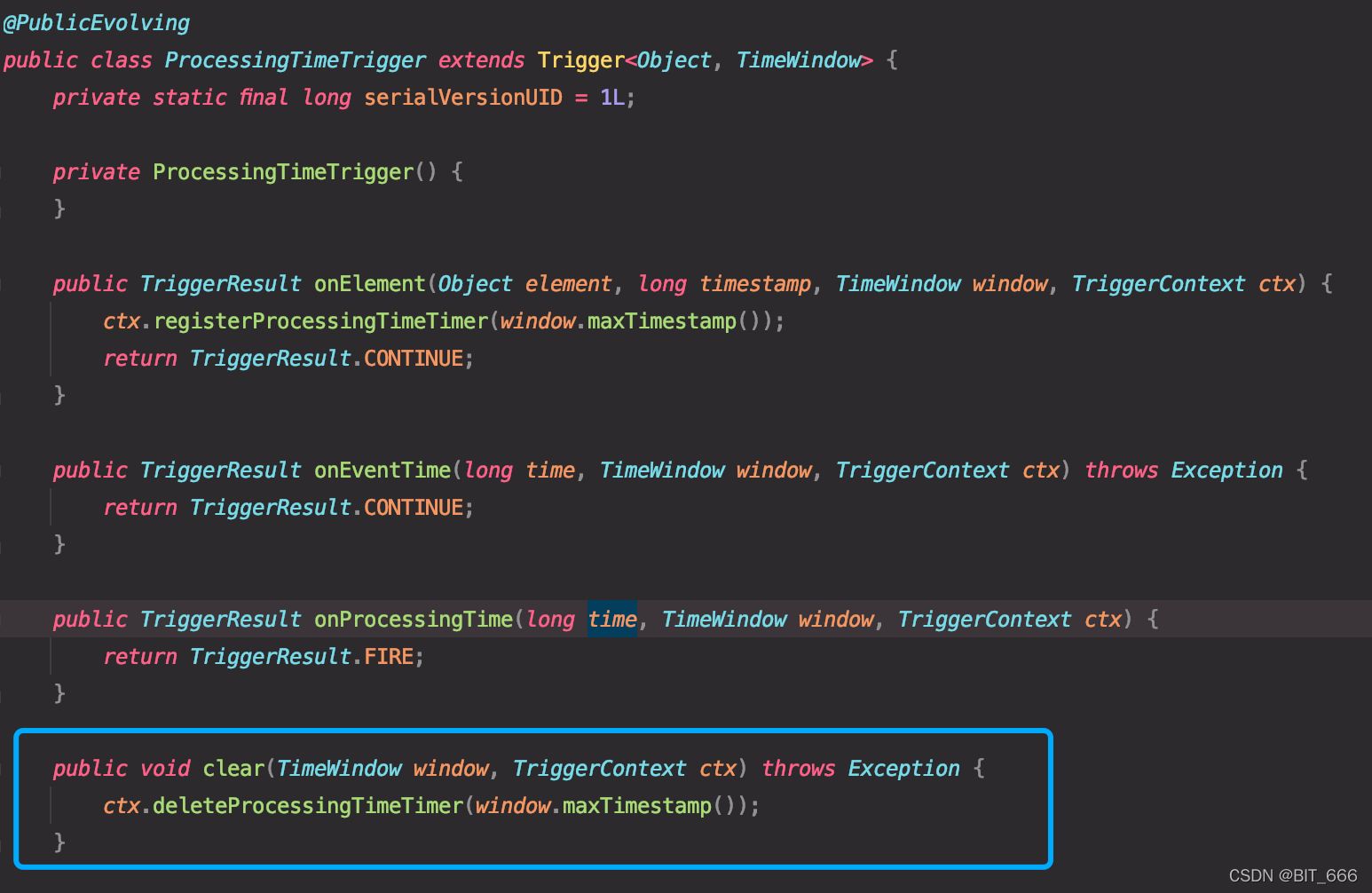 C.deleteProcessingTime - 清空原计数器,因为这里窗口触发后就要重新计数和计时